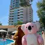 Az Iceberg Party Club csupán 600 méter távolságra, a Globus-part pedig belátható közelségre helyezkedik el a szállástól. A környék természeti látványosságai közé tartozik az 1 km-re található az Action vízi park, a strand pedig nagyjából 5 perc sétára van a Grand Hotel. A hotel népszerű látnivalókkal körülvett, köztük éttermekkel és bárokkal. A Kórház pihenőhely és a Royal Beach Mall közel vannak a Napospart városi ingatlantól. Az Astoria buszmegálló alig 500 méter távolságra fekszik.